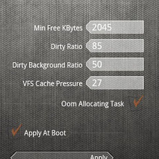 - Dirty Ratio (vm.dirty_ratio) dan Dirty Background Ratio (vm.dirty_background_ratio) berfungsi mengontrol seberapa sering kernel menulis data ke disk (disk dalam hal ini adalah internal sd card di sistem/handheld, bukan external sd card). Ketika aplikasi-aplikasi menulis data ke disk, Linux sebenarnya tidak menulis data langsung ke disk, tetapi linux menulisnya ke system memory dan kernel menangani kapan dan bagaimana data tersebut dimasukkan ke disk. Nilai dalam sysctl mempresentasikan prosentase, lebih tinggi prosentase yang sampeyan masukkan, lebih lama menunggu data di masukkan ke disk, sebaliknya, semakin rendah nilai prosentase yang sampeyan masukkan, data lebih sering dimasukkan ke disk. Sekarang kita ingat2 lagi, kita berhadapan dengan internal disk yaitu solid state disk, bukan disk dengan sistem piringan seperti harddisk di komputer, jadi kita bisa menahan sistem memasukkan data ke disk lebih lama daripada di disk dengan sistem piringan.