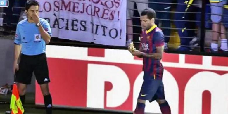 | Dani Alves saat memakan pisang di kandang Villareal |